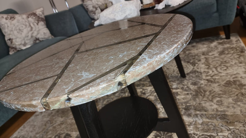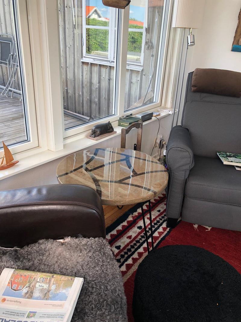 Sten möter modern teknik. Våra bord är inte bara möbler, de är handgjorda konstobjekt. Vi kombinerar Ölandsstenens varma toner och råa karaktär med högkvalitativ, klar epoxi som är motståndskraftig mot gulning. Varje bord är unikt, aldrig två identiska. Ytan poleras noggrant för att bli mjuk och behaglig, samtidigt som stenens naturliga brott och struktur får leva. Mått, diameter och höjd kan anpassas efter önskemål.
